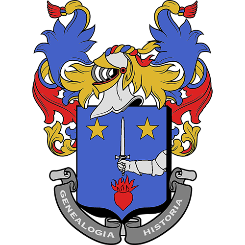 D’azur, à un bras tenant une épée mise en pal d’argent accotée de deux étoiles d’or, à un cœur de gueules en pointe